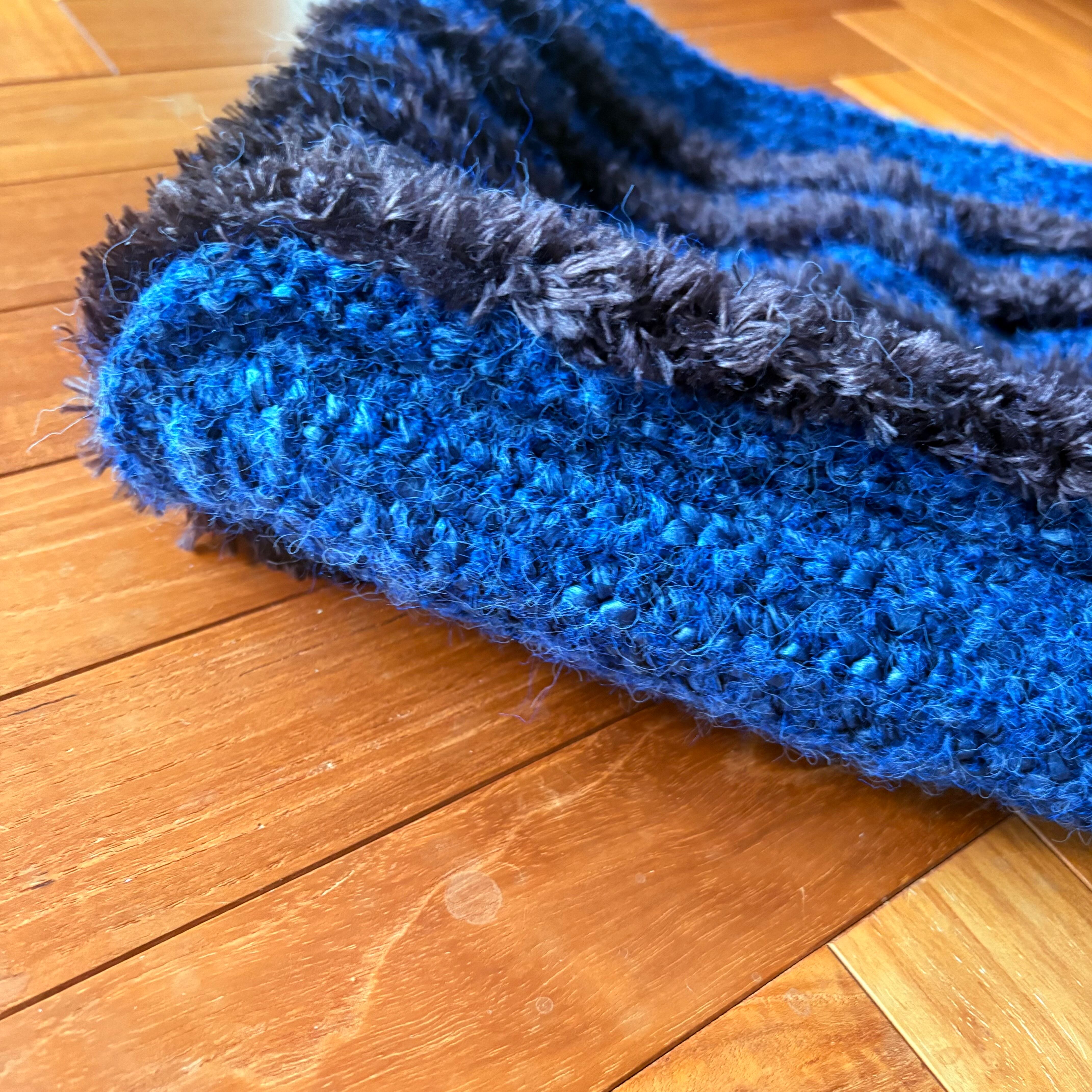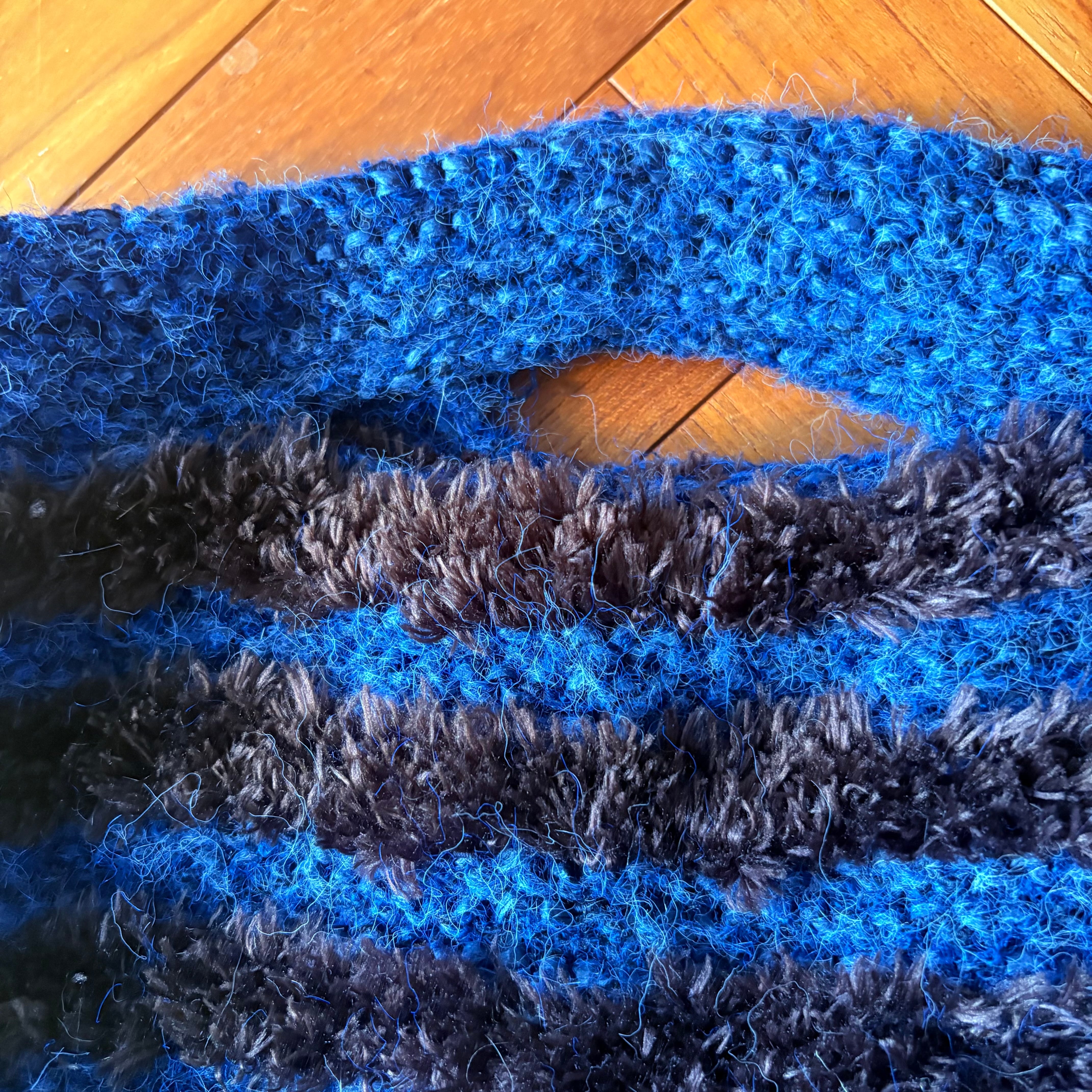 明るめのブルーと光沢のあるブラウンのボーダー。