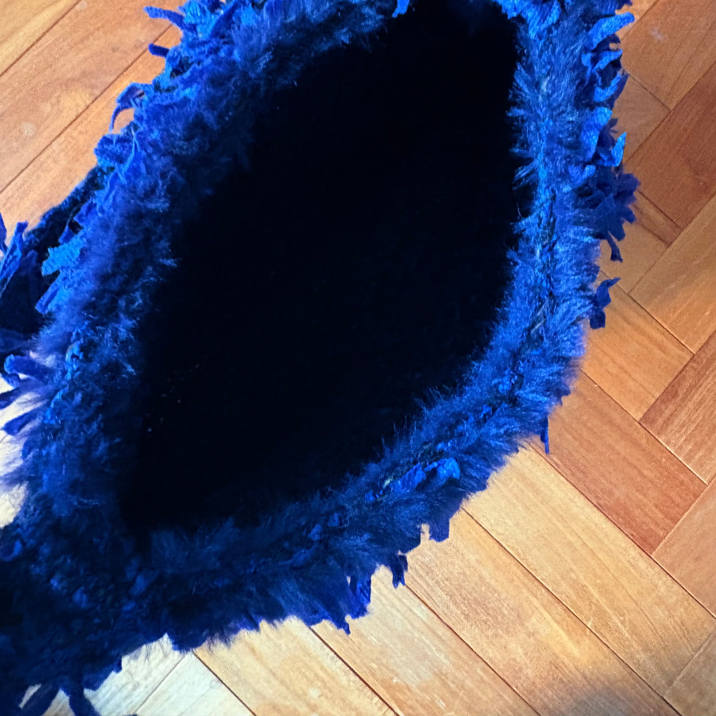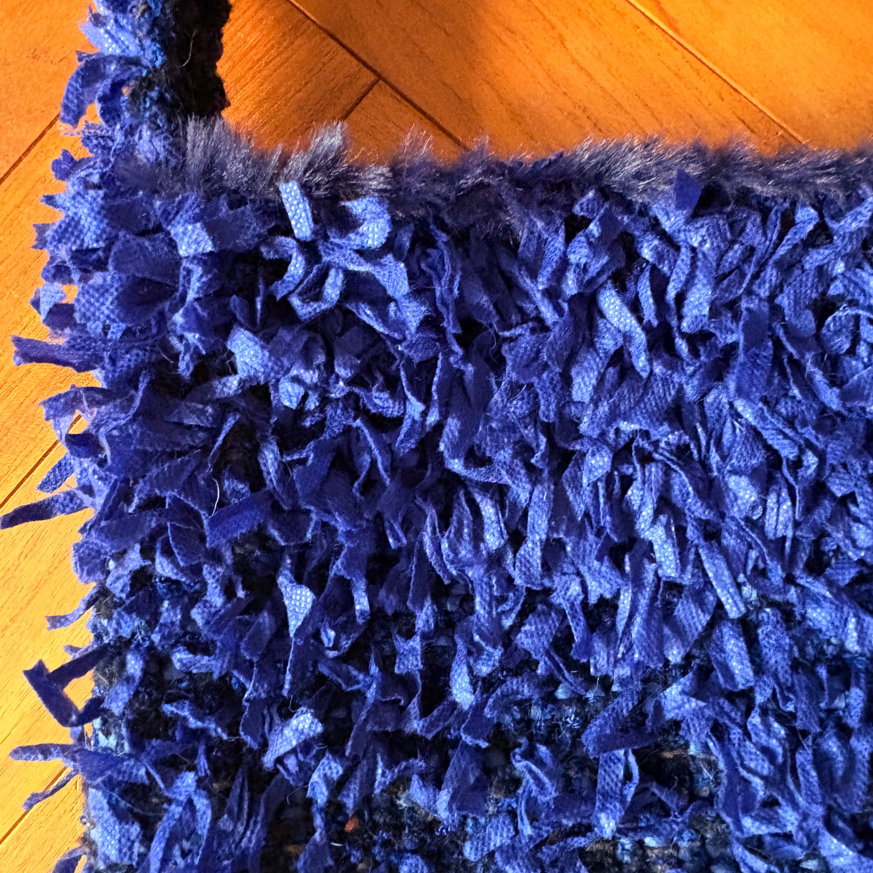 ブルーのリボンヤーンが華やかな主役級のショルダートートバッグ(ネイビー)