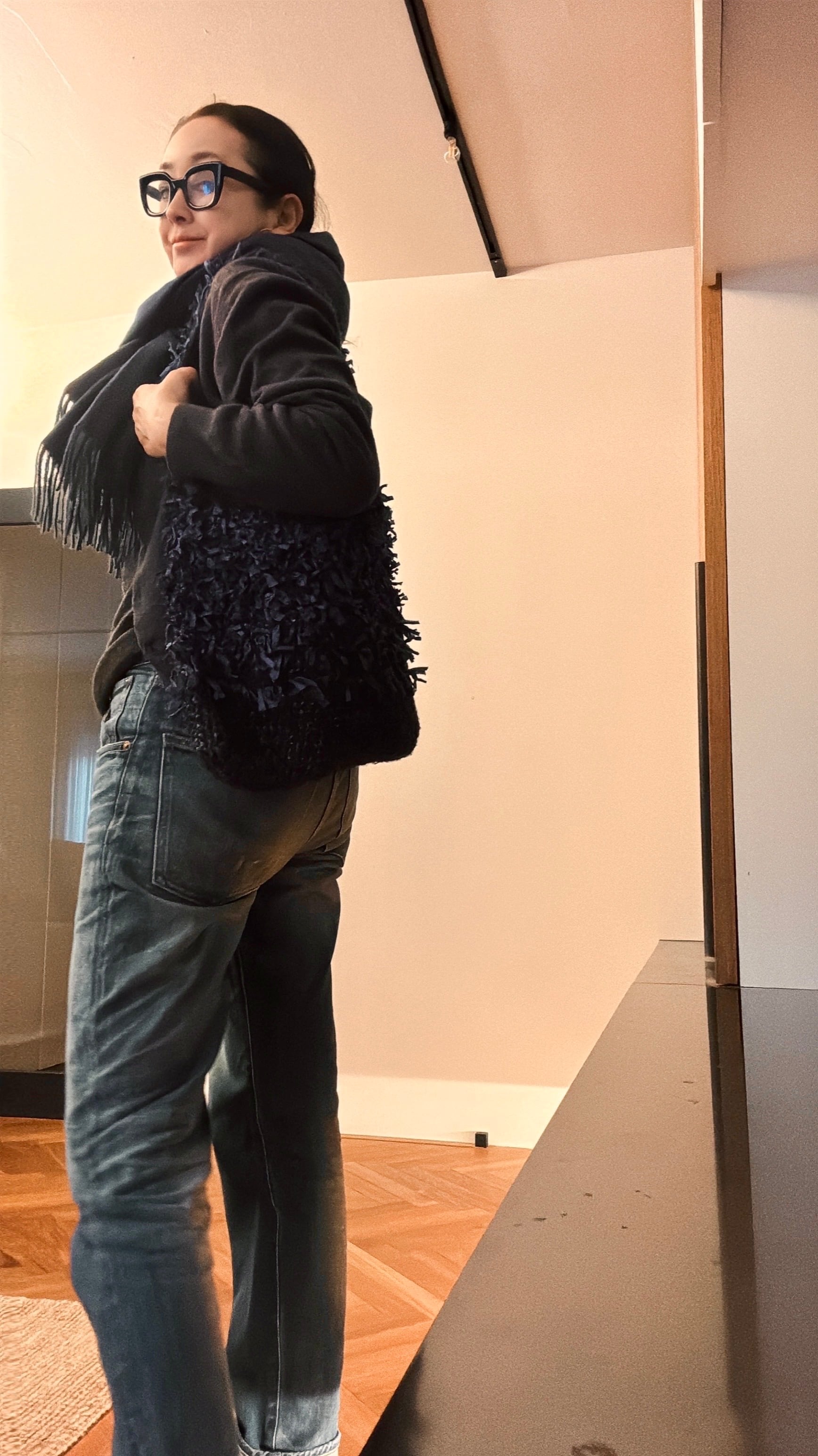 ネイビーのワンピースやデニムとも合うなぁと。